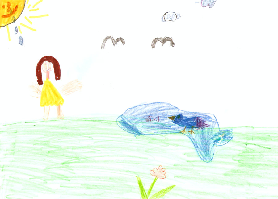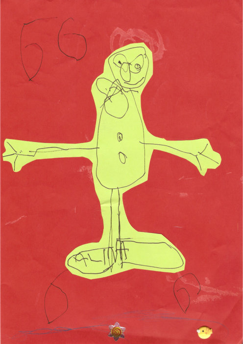 Diese lustige Figur wurde von Alina mit 6 Jahren gezeichnet und aufgeklebt.
